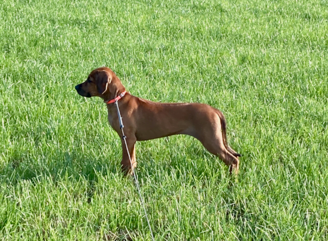Maya heeft wel zoals veel Ridgebacks een jachtinstinct en zodra er een eend is gespot, neemt ze zelf de leiding en gaat ze op jacht. Gelukkig komt ze altijd weer bij haar baasje terug.